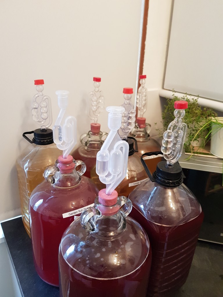 I’ve been enjoying myself. I’ve made strawberry, raspberry, bramble and mixed fruit jams, hawthorn jelly, spiced apple chutney, tomato chutney, ginger syrup, rosehip syrup, garden fruit wine, rosehip and hawthorn wine, rhubarb wine, and mead.