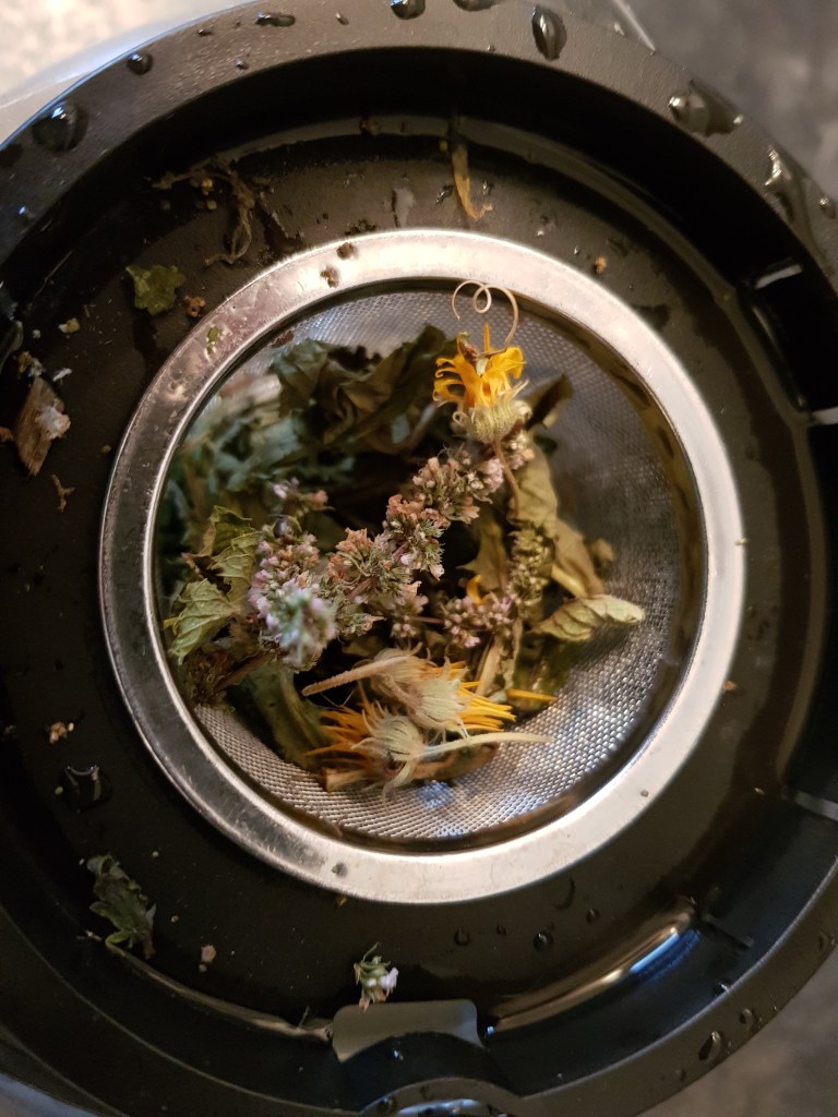 I also love herbal tea, and this is where my gardening and my love of homemade food join together. I am lucky enough to have a garden which has enough space for a dedicated herb garden, and I grow enough of my own herbs to dry and make into tea. Most herbs can be picked straight from the garden and used fresh, and I have a tea pot with a removable infuser so I can remove the leaves when I have the strength I like.